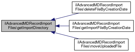 Here is the call graph for this function:| ilAdvancedMDRecordImportFiles::getImportDirectory | ( | ) |