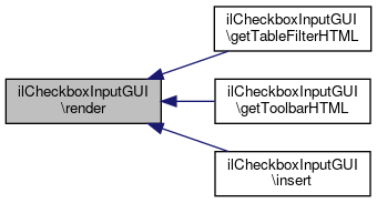 Here is the call graph for this function:| ilCheckboxInputGUI::render | ( | $a_mode = '' | ) |