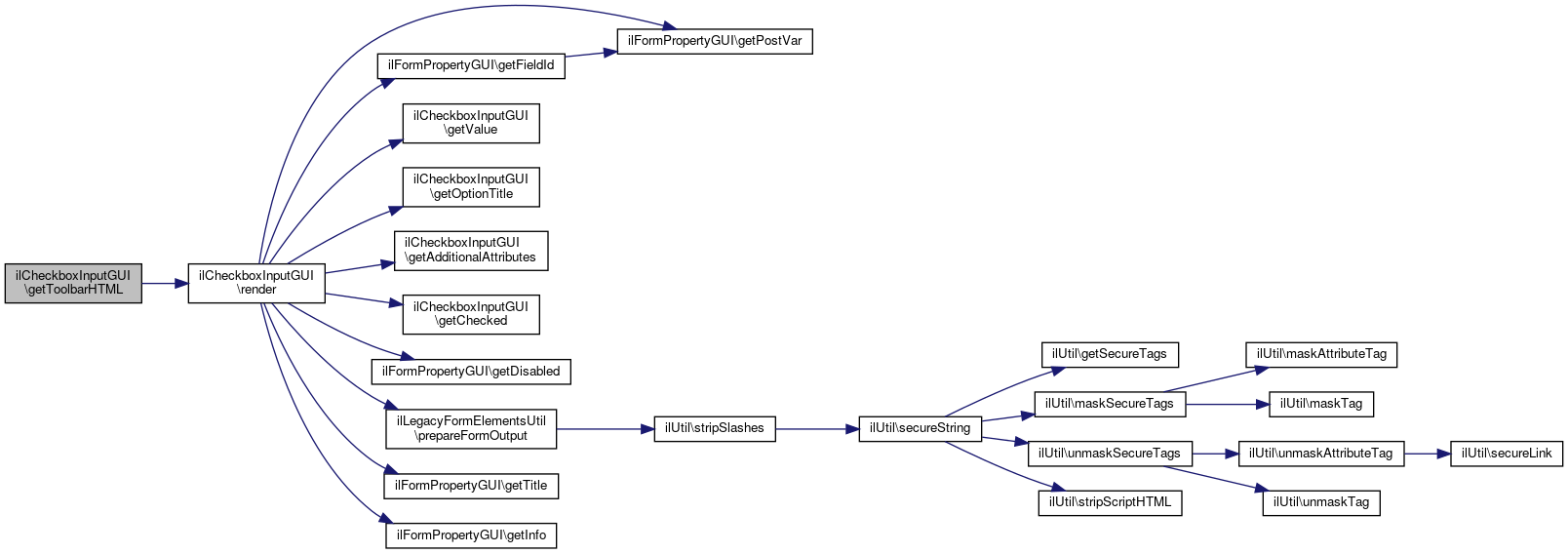 Here is the call graph for this function:| ilCheckboxInputGUI::getToolbarHTML | ( | ) |