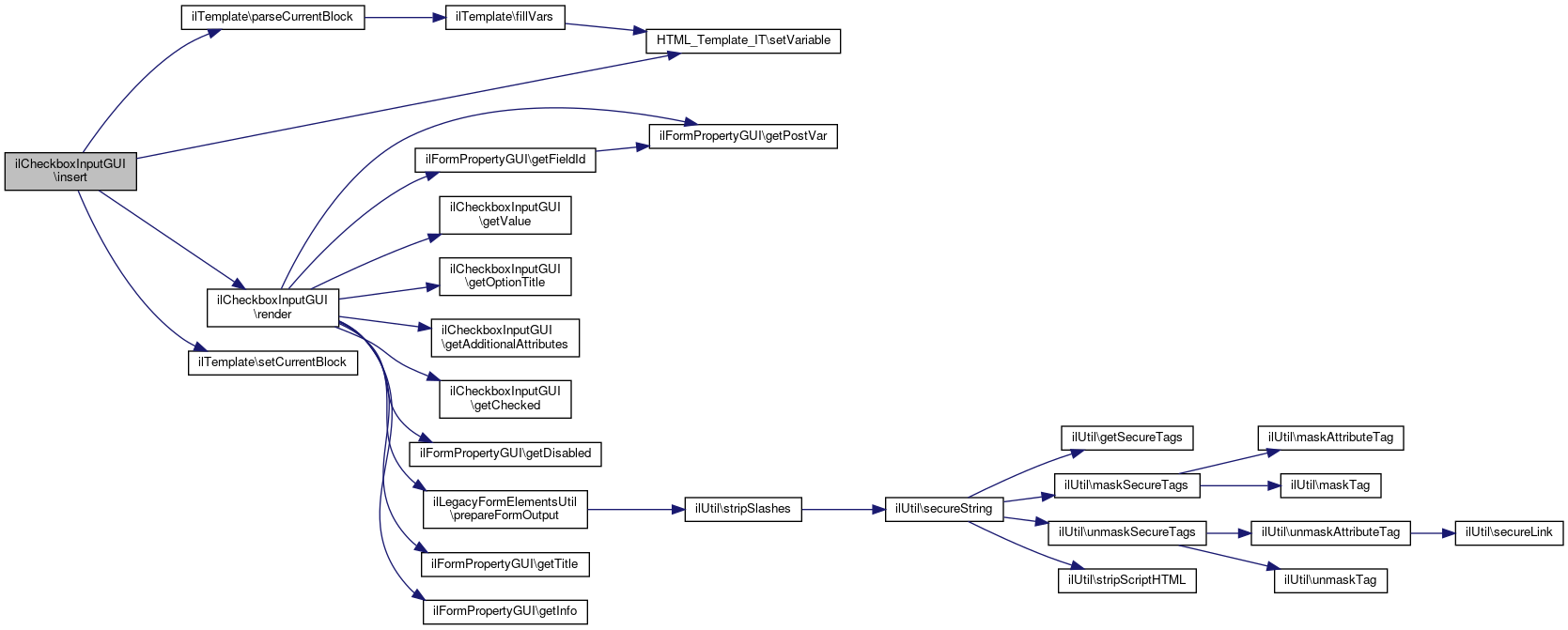 Here is the call graph for this function:| ilCheckboxInputGUI::insert | ( | ilTemplate | $a_tpl | ) |