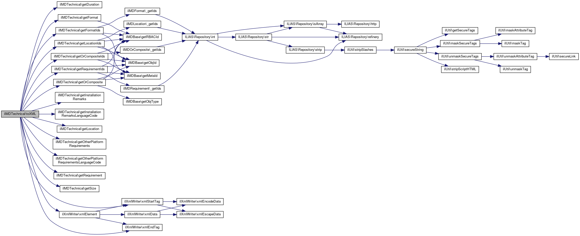 Here is the caller graph for this function:| ilMDTechnical::toXML | ( | ilXmlWriter | $writer | ) |