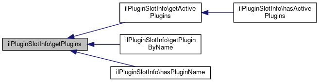 Here is the call graph for this function:| ilPluginSlotInfo::getPlugins | ( | ) |