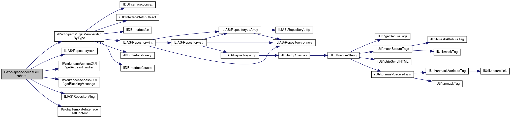 Referenced by ilWorkspaceAccessHandler\_getPermissions(), ILIAS\Portfolio\Notification\SharedNotification\appendObjectInformation(), ilPortfolioAccessHandler\checkAccessOfUser(), ilWorkspaceAccessHandler\checkAccessOfUser(), ilObjWorkspaceFolderGUI\copyShared(), ilWorkspaceShareTableGUI\fillRow(), ilWorkspaceAccessHandler\findSharedObjects(), ilPortfolioAccessHandler\findSharedObjects(), ilWorkspaceAccessHandler\getPossibleSharedTargets(), ilPortfolioAccessHandler\getPossibleSharedTargets(), ilWorkspaceAccessHandler\getSharedNodePassword(), ilPortfolioAccessHandler\getSharedNodePassword(), ilSharedResourceGUI\hasAccess(), ilWorkspaceAccessHandler\hasGlobalPasswordPermission(), ilPortfolioAccessHandler\hasGlobalPasswordPermission(), and ilWorkspaceAccessTableGUI\importData().