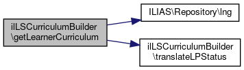 Here is the call graph for this function:| ilLSCurriculumBuilder::getLearnerCurriculum | ( | bool | $with_action = false | ) |