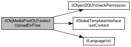 Here is the call graph for this function:| ilObjMediaPoolGUI::selectUploadDirFiles | ( | ?array | $a_files = null | ) |