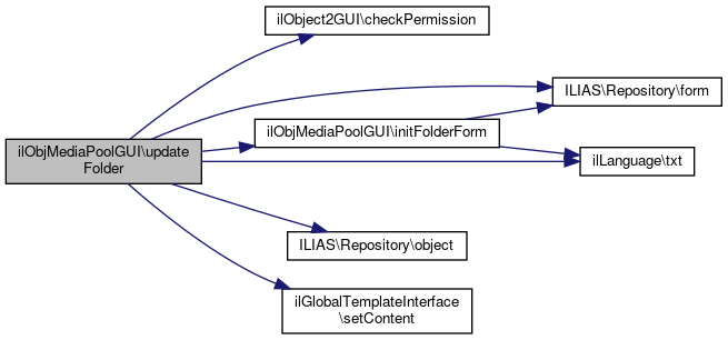Here is the call graph for this function:| ilObjMediaPoolGUI::updateFolder | ( | ) |