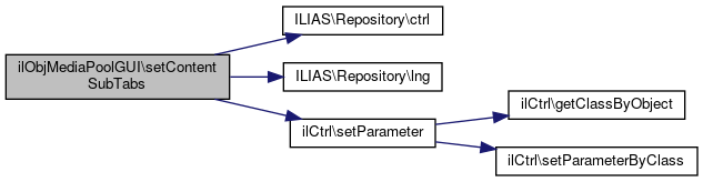 Here is the call graph for this function:| ilObjMediaPoolGUI::setContentSubTabs | ( | string | $a_active | ) |