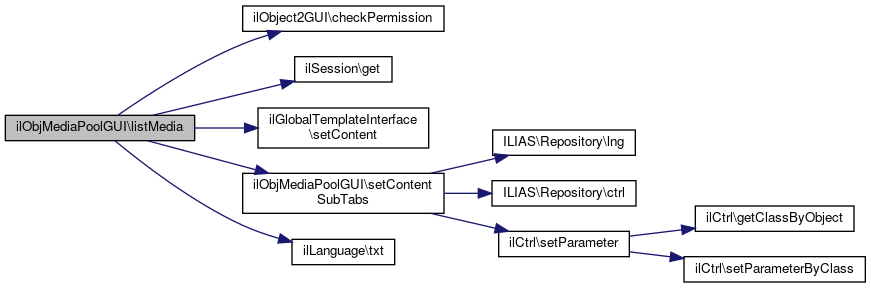 Here is the call graph for this function:| ilObjMediaPoolGUI::listMedia | ( | ) |