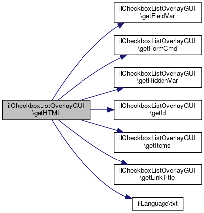 Here is the caller graph for this function:| ilCheckboxListOverlayGUI::getHTML | ( | bool | $pull_right = true | ) |