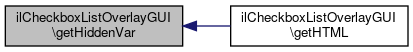 Here is the caller graph for this function:| ilCheckboxListOverlayGUI::getHiddenVar | ( | ) |
