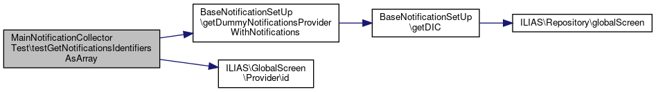 Here is the call graph for this function:| MainNotificationCollectorTest::testGetNotificationsIdentifiersAsArray | ( | ) |