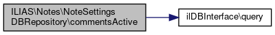 Here is the call graph for this function:| ILIAS\Notes\NoteSettingsDBRepository::commentsActive | ( | int | $obj_id | ) |