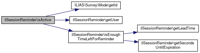 Here is the caller graph for this function:| ilSessionReminder::isActive | ( | ) |