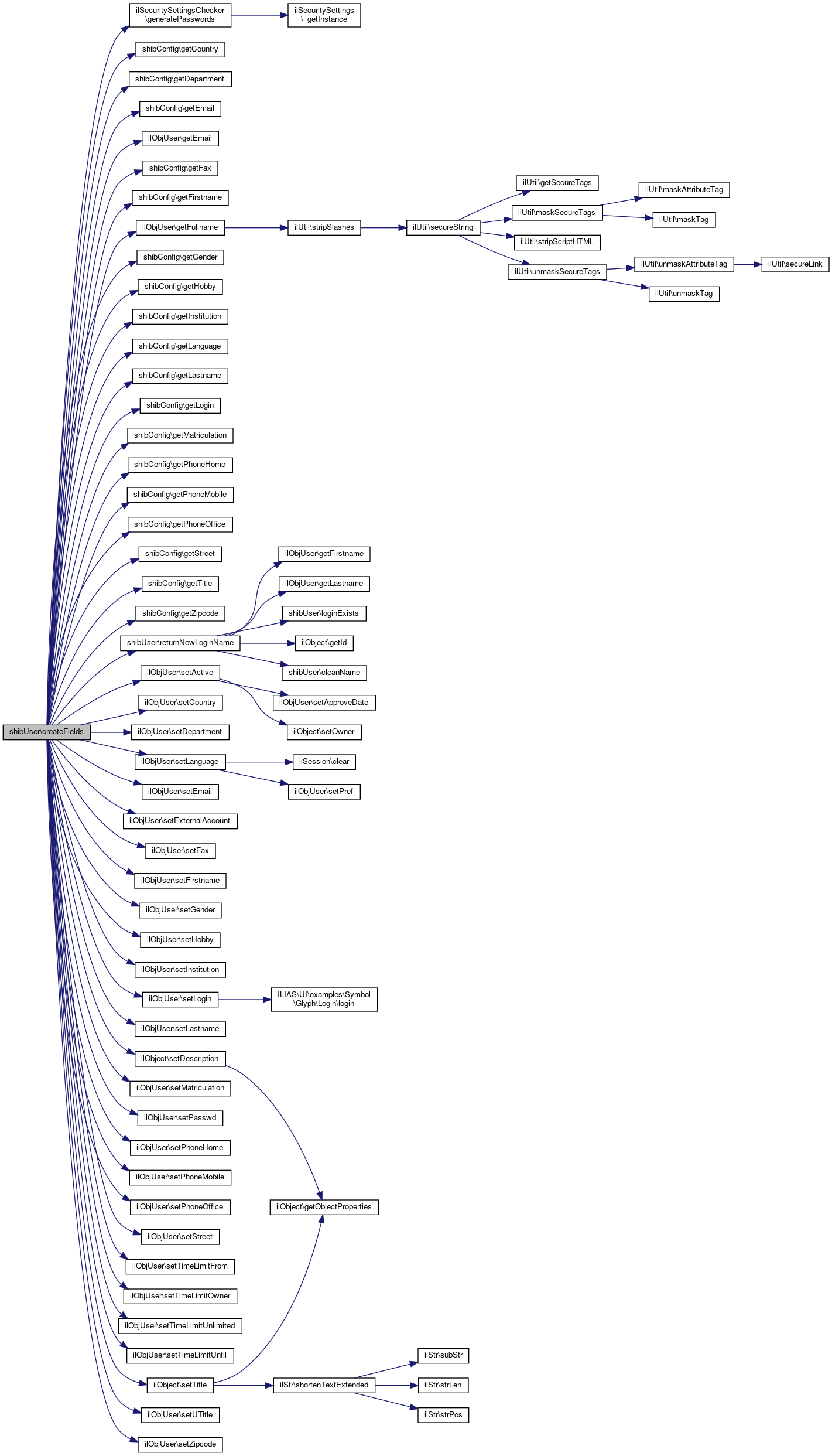 Here is the call graph for this function:| shibUser::createFields | ( | ) |