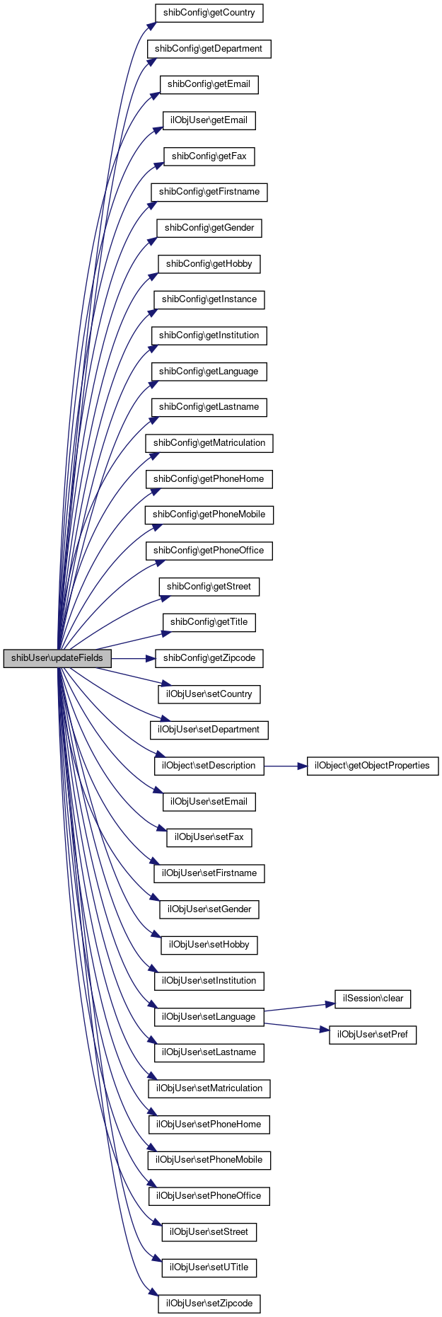 Here is the caller graph for this function:| shibUser::updateFields | ( | ) |