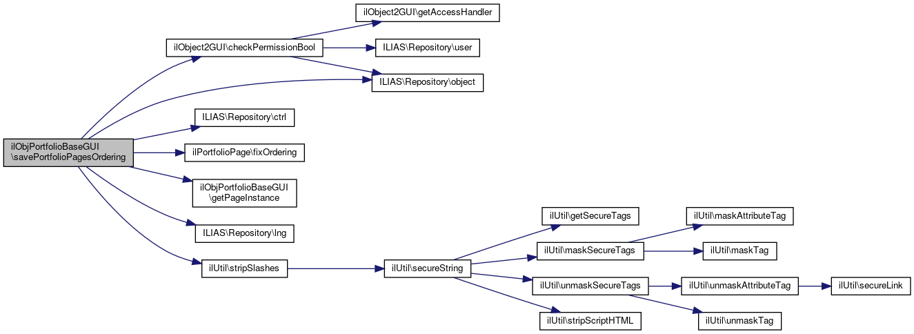 Here is the call graph for this function:| ilObjPortfolioBaseGUI::savePortfolioPagesOrdering | ( | ) |