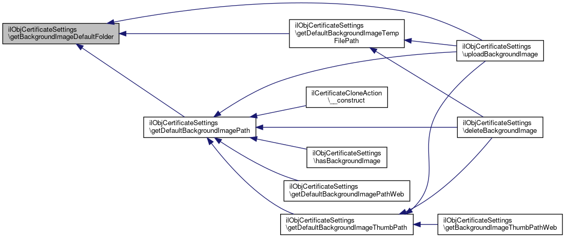 Here is the call graph for this function:| ilObjCertificateSettings::getBackgroundImageDefaultFolder | ( | bool | $relativePath = false | ) |