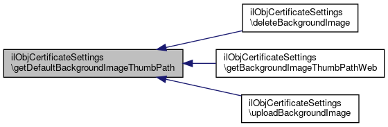Here is the caller graph for this function:| ilObjCertificateSettings::getDefaultBackgroundImageThumbPath | ( | bool | $relativePath = false | ) |