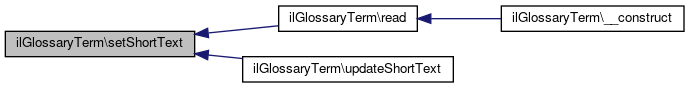 Here is the caller graph for this function:| ilGlossaryTerm::setShortText | ( | string | $a_text | ) |