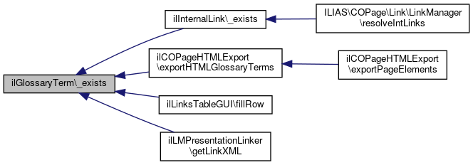 Referenced by ilInternalLink\_exists(), ilCOPageHTMLExport\exportHTMLGlossaryTerms(), ilLinksTableGUI\fillRow(), and ilLMPresentationLinker\getLinkXML().