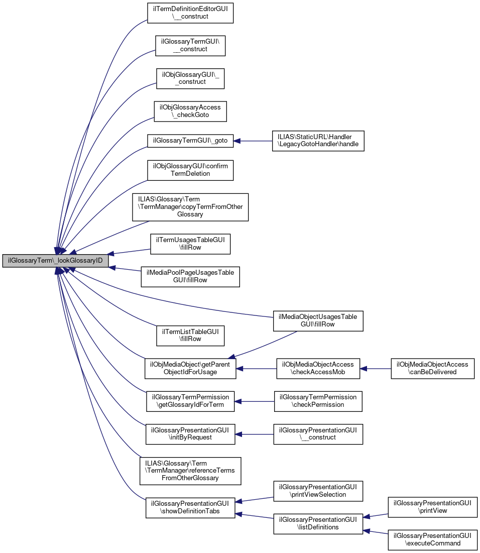 Referenced by ilTermDefinitionEditorGUI\__construct(), ilGlossaryTermGUI\__construct(), ilObjGlossaryGUI\__construct(), ilObjGlossaryAccess\_checkGoto(), ilGlossaryTermGUI\_goto(), ilObjGlossaryGUI\confirmTermDeletion(), ILIAS\Glossary\Term\TermManager\copyTermFromOtherGlossary(), ilTermUsagesTableGUI\fillRow(), ilMediaPoolPageUsagesTableGUI\fillRow(), ilMediaObjectUsagesTableGUI\fillRow(), ilTermListTableGUI\fillRow(), ilGlossaryTermPermission\getGlossaryIdForTerm(), ilObjMediaObject\getParentObjectIdForUsage(), ilGlossaryPresentationGUI\initByRequest(), ILIAS\Glossary\Term\TermManager\referenceTermsFromOtherGlossary(), and ilGlossaryPresentationGUI\showDefinitionTabs().