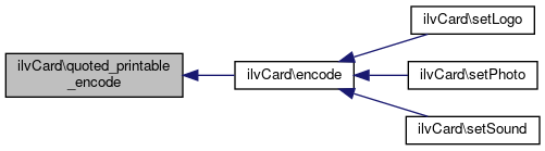 Here is the call graph for this function:| ilvCard::encode | ( | string | $string | ) |
