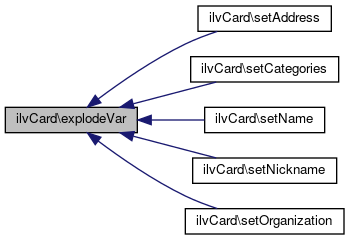 Here is the caller graph for this function:| ilvCard::explodeVar | ( | string | $variable, |