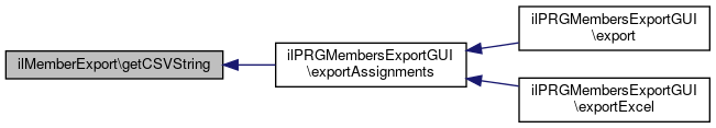 Here is the caller graph for this function:| ilMemberExport::getCSVString | ( | ) |
