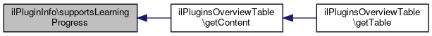 Here is the caller graph for this function:| ilPluginInfo::supportsLearningProgress | ( | ) |