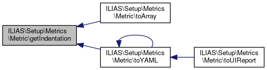 Here is the caller graph for this function:| ILIAS\Setup\Metrics\Metric::toArray | ( | int | $indentation = 0 | ) |