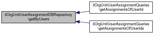 Here is the caller graph for this function:| ilOrgUnitUserAssignmentDBRepository::getByUsers | ( | array | $user_ids | ) |
