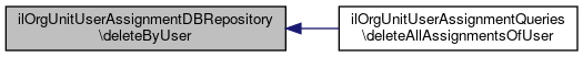Here is the call graph for this function:| ilOrgUnitUserAssignmentDBRepository::deleteByUser | ( | int | $user_id | ) |