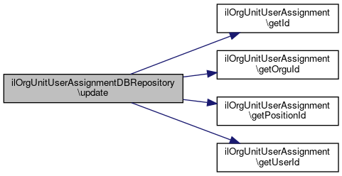 References ilOrgUnitUserAssignment\getId(), ilOrgUnitUserAssignment\getOrguId(), ilOrgUnitUserAssignment\getPositionId(), and ilOrgUnitUserAssignment\getUserId().