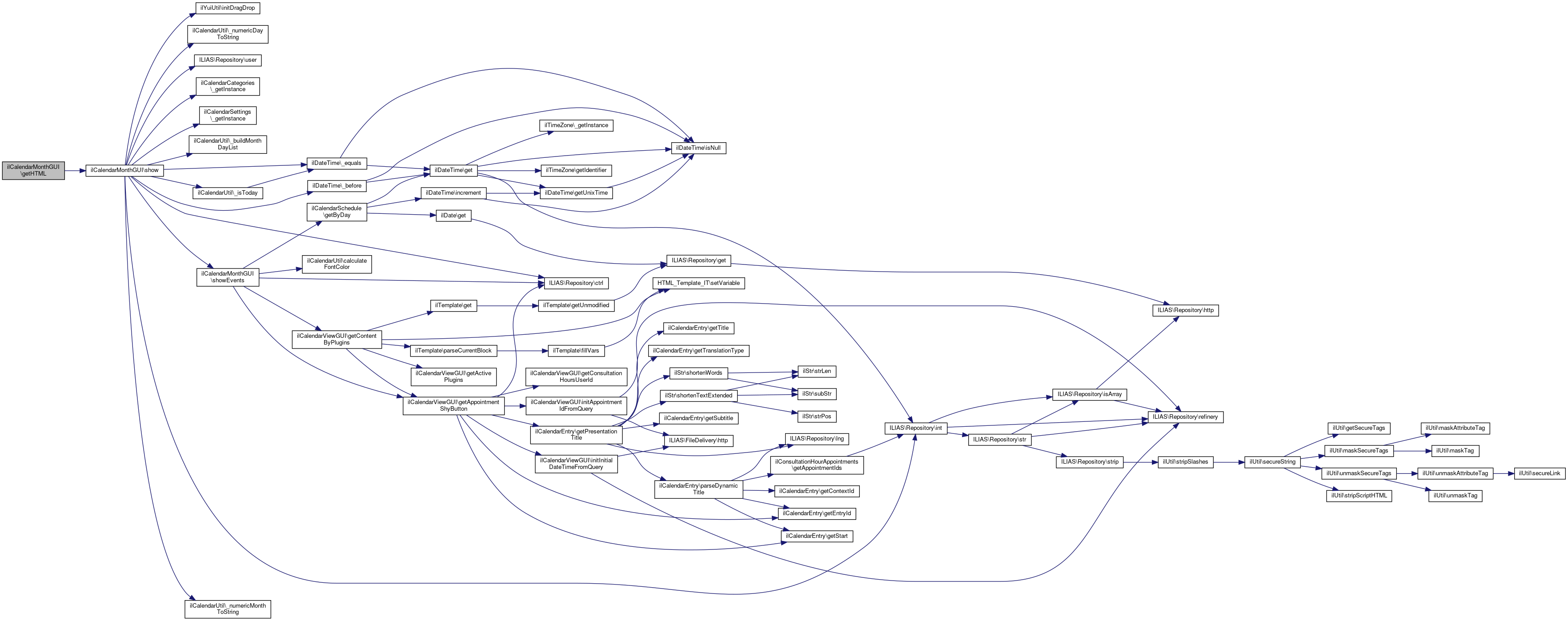 Here is the call graph for this function:| ilCalendarMonthGUI::getHTML | ( | ) |