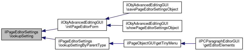Referenced by ilObjAdvancedEditingGUI\initPageEditorForm(), and lookupSettingByParentType().