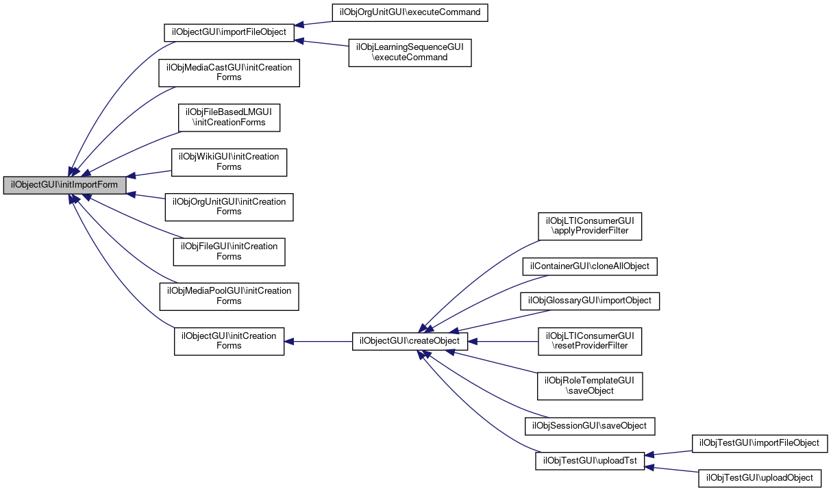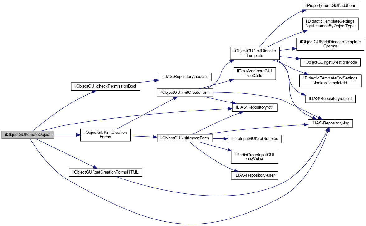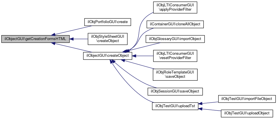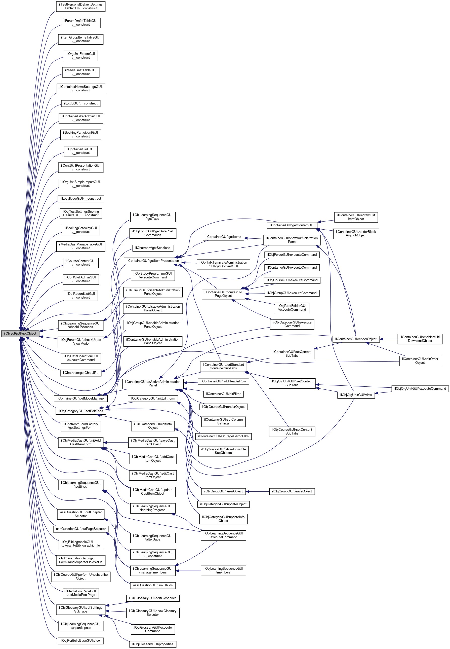 Referenced by ilObjMediaObjectGUI\_getMediaInfoHTML(), ilObjBadgeAdministrationGUI\activateTypes(), ilContainerGUI\addMessageRow(), ilObjWikiGUI\checkPermissionBool(), ilObjTestGUI\copyAndLinkToQuestionpoolObject(), ilObjUserFolderGUI\exportObject(), ilObjLearningSequenceGUI\getAdditionalOKTypes(), ilContainerGUI\getAsynchItemListObject(), ilObjExternalToolsSettingsGUI\getMapsForm(), ilObjTalkTemplateGUI\getTabs(), ilObjStyleSheetGUI\getTemplateFormValues(), ilContainerGUI\getTreeSelectorGUI(), ilObjMDSettingsGUI\getType(), ilObjUserFolderGUI\getUserMultiCommands(), ilObjSurveyGUI\getUserResultsPlain(), ilObjBookingPoolGUI\initEditCustomForm(), ilObjBadgeAdministrationGUI\initImageTemplateForm(), ilObjUserTrackingGUI\initLPDefaultsForm(), ilObjContentObjectGUI\initMenuForm(), ilObjChatroomGUI\insertObject(), ilObjSCORMLearningModuleGUI\newModuleVersion(), ilObjQuestionPoolGUI\questionObject(), ilObjUserTrackingGUI\saveLPDefaultsObject(), ilObjMediaObjectGUI\savePropertiesObject(), ilObjMediaObjectGUI\setObjectPerCreationForm(), ilContainerGUI\showLinkListObject(), ilCourseContentGUI\showStartObjects(), and ilObjQuestionPoolGUI\uploadQplObject().