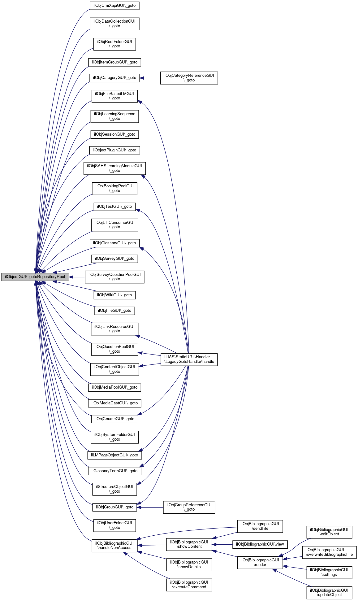 Referenced by ilObjLearningModuleGUI\__construct(), ilObjRoleTemplateGUI\__construct(), ilObjStyleSheetGUI\__construct(), ilObjStudyProgrammeGUI\__construct(), ilObjForumGUI\__construct(), __construct(), ilObjChatroomAdminGUI\_goto(), ilObjChatroomGUI\_goto(), ilObjStudyProgrammeAdminGUI\_goto(), ilObjDataCollectionGUI\_goto(), ilObjItemGroupGUI\_goto(), ilObjectPluginGUI\_goto(), ilObjPollGUI\_goto(), ilObjSurveyGUI\_goto(), ilObjWikiGUI\_goto(), ilObjMediaPoolGUI\_goto(), ilObjForumGUI\_goto(), ilObjRoleTemplateGUI\addAdminLocatorItems(), ilObjIndividualAssessmentGUI\addToNavigationHistory(), ilObjStudyProgrammeGUI\addToNavigationHistory(), ilObjLearningSequenceGUI\checkLPAccess(), ilObject2GUI\checkPermission(), ilObjWikiGUI\checkPermissionBool(), ilContainerGUI\clipboardObject(), ilContainerGUI\cloneAllObject(), ilObjEmployeeTalkGUI\confirmedDeleteObject(), ilObjLTIConsumerGUI\contentSelectionRequest(), ilObjLTIConsumerGUI\contentSelectionResponse(), ilContainerGUI\copyObject(), ilObjChatroomGUI\createActionDispatcherGUI(), createActionDispatcherGUI(), ilObjPortfolioTemplateGUI\createFromTemplate(), ilObjTestGUI\createQuestionPoolAndCopyObject(), ilContainerGUI\cutObject(), ilObjForumGUI\deleteSelectedDraft(), ilObjTypeDefinitionGUI\displayList(), ilObjForumGUI\doHistoryCheck(), ilObjTypeDefinitionGUI\editObject(), ilObjDataCollectionGUI\editObject(), ilRemoteObjectBaseGUI\executeCommand(), ilObjGroupGUI\executeCommand(), ilObjTestGUI\executeCommand(), ilContainerGUI\getAsynchItemListObject(), ilObjForumGUI\getContent(), ilObjQuestionPoolGUI\getQueryParamInt(), getRefId(), ilObjForumGUI\getSafePostCommands(), ilObjItemGroupGUI\gotoParent(), ilRemoteObjectBaseGUI\infoScreen(), ilObjForumGUI\initHeaderAction(), ilContainerGUI\linkObject(), ilObjAssessmentFolderGUI\logAdminObject(), ilContainerGUI\pasteObject(), ilContainerGUI\performPasteIntoMultipleObjectsObject(), ilObjRoleTemplateGUI\permSaveObject(), ilObjQuestionPoolGUI\questionsObject(), ilObjForumGUI\renderDraftContent(), ilObjBlogGUI\renderList(), ilObjForumGUI\saveAsDraftObject(), ilObjTypeDefinitionGUI\saveObject(), ilObjForumGUI\savePostObject(), ilObjOrgUnitGUI\setContentSubTabs(), ilOrgUnitExtensionGUI\setLocator(), ilObject2GUI\setLocator(), ilObjDataCollectionGUI\setTabs(), ilContainerGUI\showAdministrationPanel(), showPossibleSubObjects(), ilCourseContentGUI\showStartObjects(), ilObjForumGUI\showUserObject(), ilObjFileGUI\toggleLearningProgress(), ilObjForumGUI\updateDraftObject(), ilCourseContentGUI\updateManagedTimings(), ilCourseContentGUI\updatePersonalTimings(), and ilObjForumGUI\viewThreadObject().