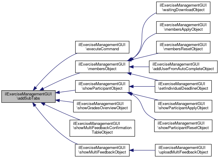 Here is the caller graph for this function:| ilExerciseManagementGUI::addSubTabs | ( | string | $a_activate | ) |