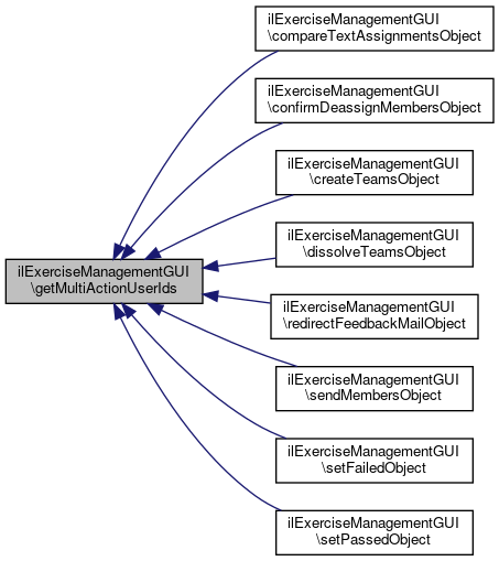 Here is the call graph for this function:| ilExerciseManagementGUI::addMembersObject | ( | $a_user_ids = array() | ) |
