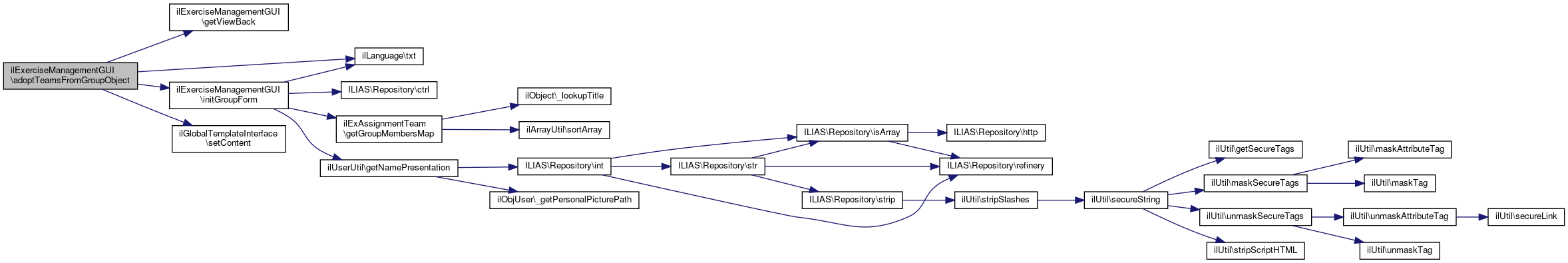 Here is the call graph for this function:| ilExerciseManagementGUI::adoptTeamsFromGroupObject | ( | ilPropertyFormGUI | $a_form = null | ) |