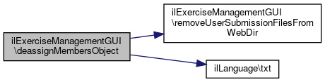 Here is the call graph for this function:| ilExerciseManagementGUI::deassignMembersObject | ( | ) |