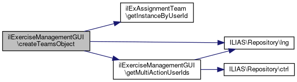 Here is the call graph for this function:| ilExerciseManagementGUI::createTeamsObject | ( | ) |