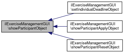 Here is the call graph for this function:| ilExerciseManagementGUI::showParticipantObject | ( | ) |