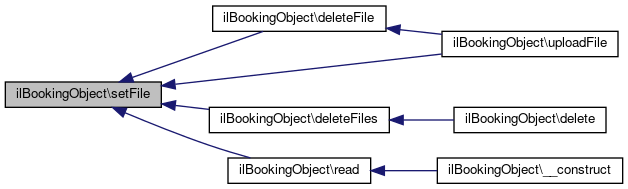 Here is the caller graph for this function:| ilBookingObject::setFile | ( | string | $a_value | ) |