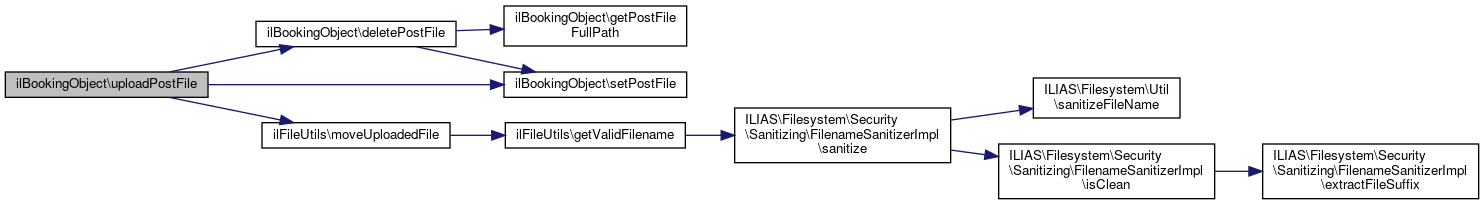 Here is the call graph for this function:| ilBookingObject::uploadPostFile | ( | array | $a_upload | ) |