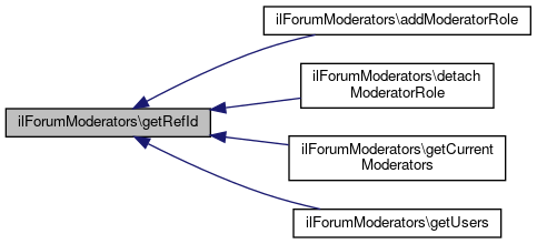 Here is the call graph for this function:| ilForumModerators::getRefId | ( | ) |