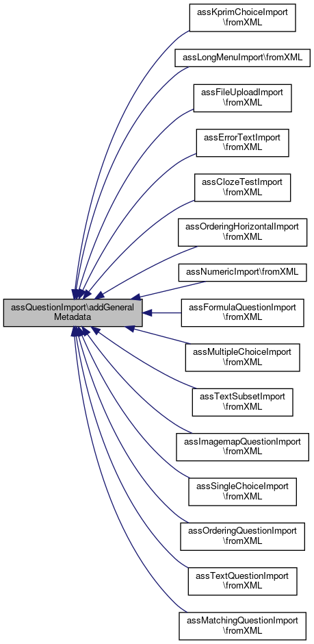 Referenced by assKprimChoiceImport\fromXML(), assLongMenuImport\fromXML(), assFileUploadImport\fromXML(), assErrorTextImport\fromXML(), assImagemapQuestionImport\fromXML(), assOrderingHorizontalImport\fromXML(), assMultipleChoiceImport\fromXML(), assNumericImport\fromXML(), assTextSubsetImport\fromXML(), assClozeTestImport\fromXML(), assSingleChoiceImport\fromXML(), assOrderingQuestionImport\fromXML(), assTextQuestionImport\fromXML(), and assMatchingQuestionImport\fromXML().