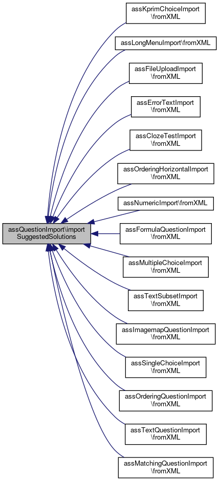 Here is the caller graph for this function:| assQuestionImport::importSuggestedSolutions | ( | int | $question_id, |