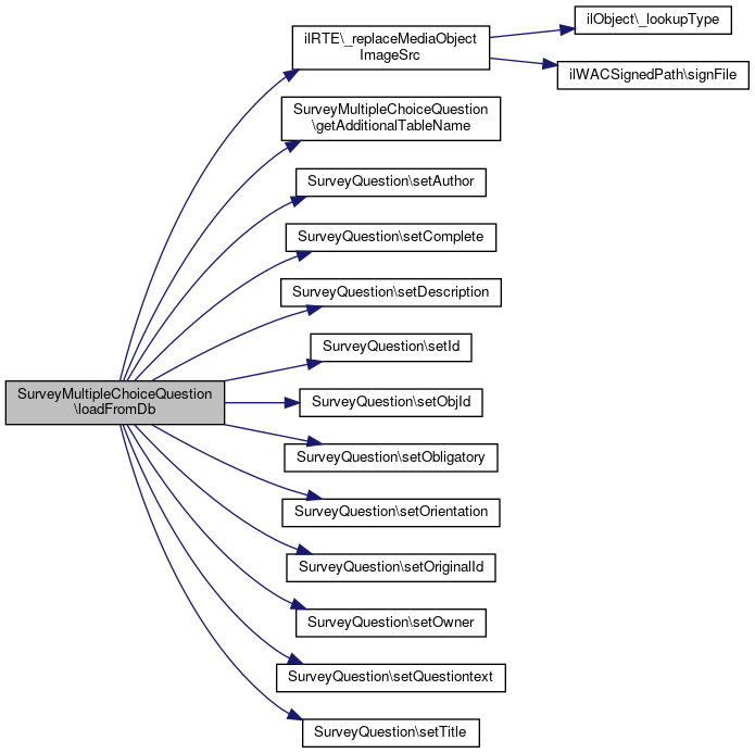 Here is the call graph for this function:| SurveyMultipleChoiceQuestion::loadFromDb | ( | int | $question_id | ) |