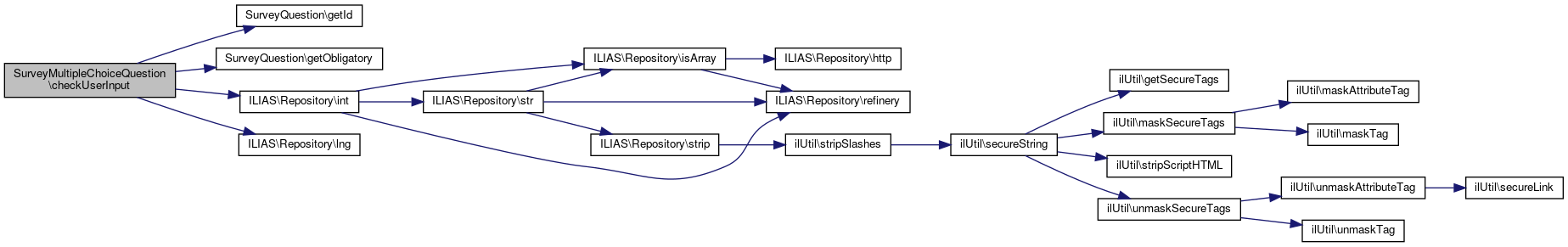 Here is the call graph for this function:| SurveyMultipleChoiceQuestion::checkUserInput | ( | array | $post_data, |